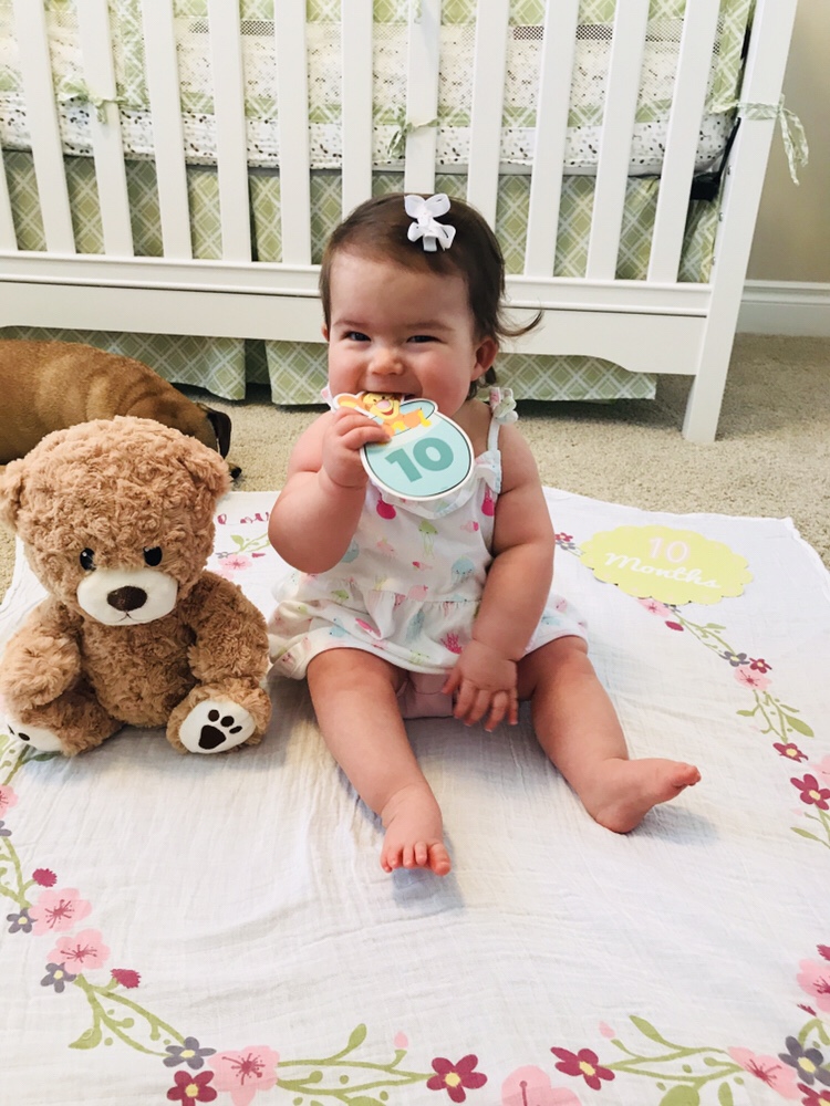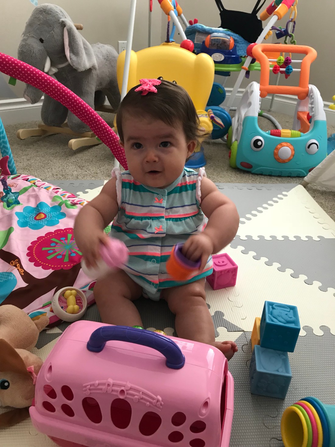 Ava has had a really good month of June. We had our first Father’s Day together as a family and celebrated moms birthday ❤️. She is continuing to grow. We are still diluting her formula to help control her weight gain. She is continuing to eat solid foods increasing the texture consistency. She has her 2 bottom teeth and now has 2 top teeth coming through.